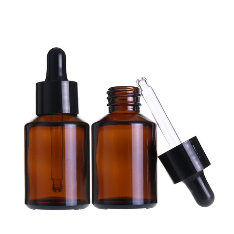 化粧品用1オンス30mlアンバーガラス丸ドロッパーセラムドロッパーボトル