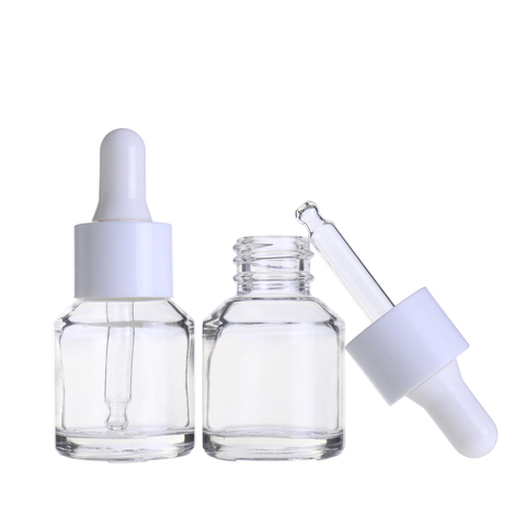 15ml空の化粧品セラムエッセンシャルオイルスラントショルダークリアガラスボトル、ホワイトドロッパー付き