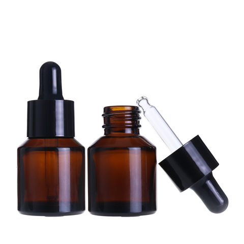 スラントショルダースキンケアパッケージング15mlアンバー空のエッセンシャルオイルガラス血清ドロッパーボトル黒ドロッパーボトル